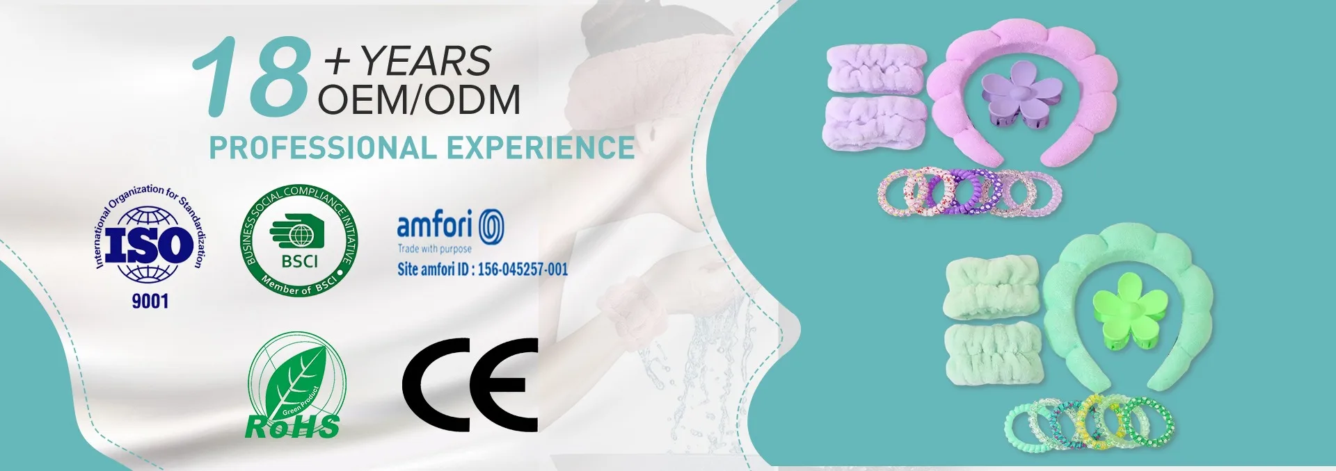 We have 50,000 products, containing all items in hair accessories. With our complete styles, reasonable prices, excellent quality and environment consciousness, Small MOQ.our products are well sold in United Kingdom, France,Italy,Germany, Canada, United States,Australia ,Russia,Eastern Europe,South America and other areas. One 5000-square-meter Factory, 10 Product Lines and manned 150 workers. Our daily output can reach 30,000pcs. Our R&D staff members with averagely 15 years of experience can develop 1000pcs new products monthly.